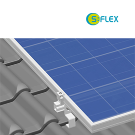 The robust sloping-roof frame from S:FLEX represents the ideal solution for reliable anchoring of solar panels. It is stable and storm-proof, weatherproof and durable, yet in harmony with the architecture, not least thanks to details such as black anodised components and end caps for the rails.